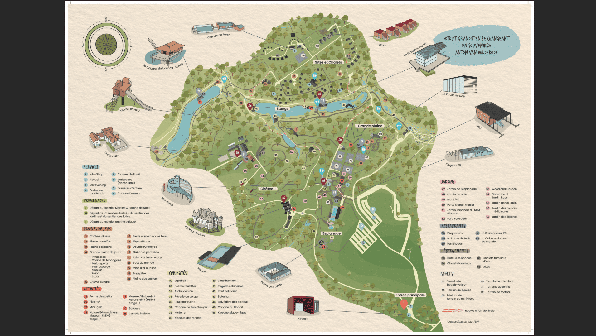 Ce lieu offre un cadre idéal pour tous les âges, avec des promenades dans la nature et les jardins, des espaces pour se poser et échanger, ainsi que de nombreuses activités comme les plaines de jeux pour les enfants, des balades autour des lacs ou encore des activités plus ludiques comme le mini-golf ou les barques.